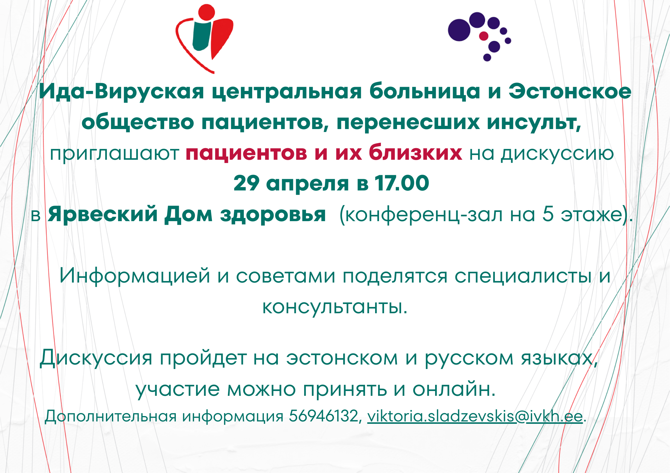 IVKH korraldab taas kohtumise- vestlusringi, kus insuldi läbi elanud inimesed ja nende lähedased saavad jagada omavahel kogemusi ning infot. Kohal on ka Eesti Insuldipatsientide Seltsi spetsialistid, kes saavad vastata osalejate küsimustele ja anda nõu.
